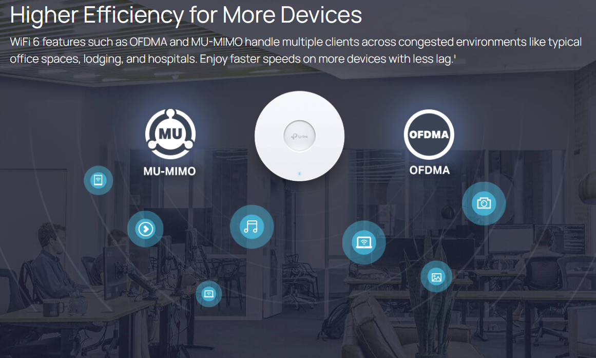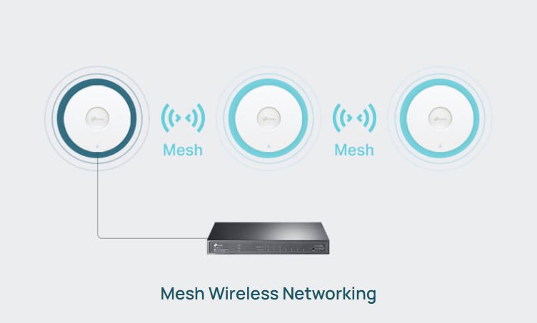 - Omada Mesh: Enables wireless connectivity between access points for extended range and flexible deployment.