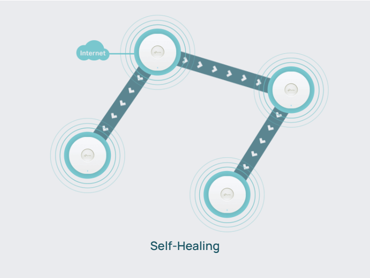 Intelligent self-organization optimizes the best path between EAPs while self-healing ensures you stay online even when one AP is disrupted.