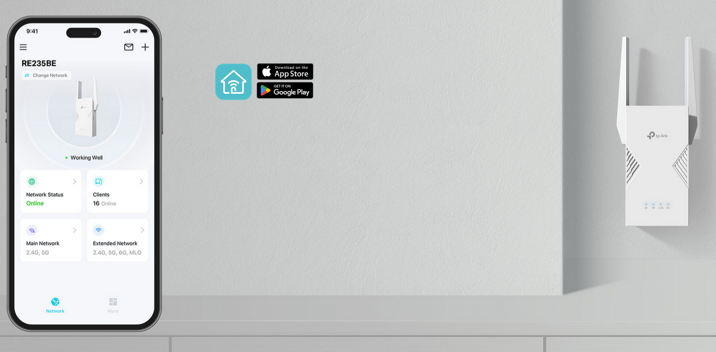 The RE235BE is EasyMesh-compatible. Pair with an EasyMesh-compatible router to eliminate weak spots and create seamless whole-home Wi-Fi, ensuring every corner of your home stays connected.
