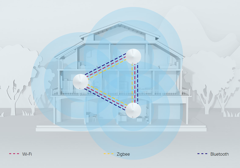 Unlike traditional smart hubs, TP-Link Mesh Technology provides whole-home IoT coverage with Wi-Fi, Bluetooth and Zigbee integrated into a single system.Enjoy the magic of your smart home in every room with TP-Link Mesh Technology. Say goodbye to countless hubs.