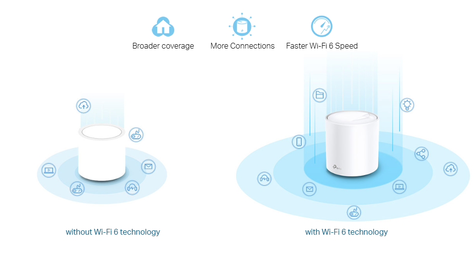 To blanket your entire home with WiFi, Deco PX10 units work together as a powerful mesh network to boost broader coverage for connections in every corner. Want more coverage? Simply add another Deco. All TP-Link Deco can work together.