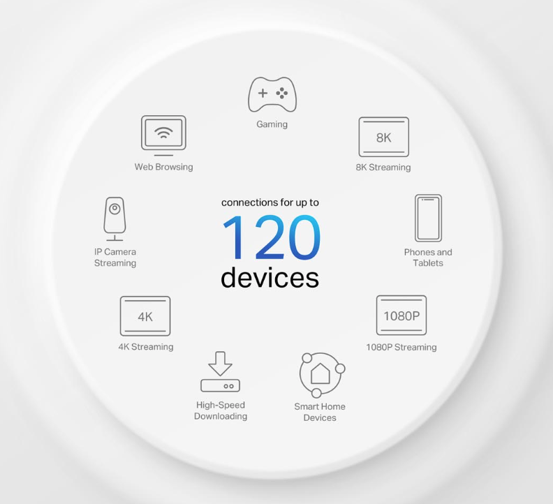 Enhanced by WiFi 6. featuring OFDMA and MU-MIMO technology, Deco PX10 allows you to connect up to 120 devices. Enjoy a more efficient network that loads faster without dragging down preformance.