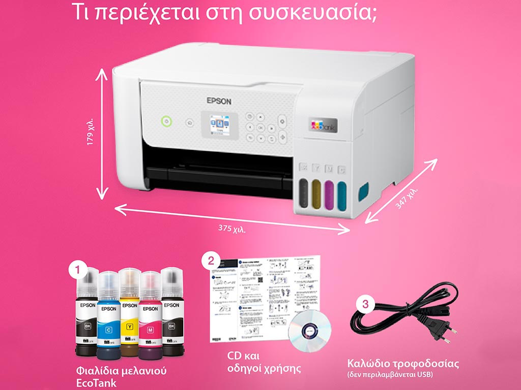 | Μοντέλο | Έγχρωμο Πολυμηχάνημα EcoTank L3266 ITS Multifunction Inkjet |
