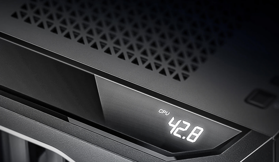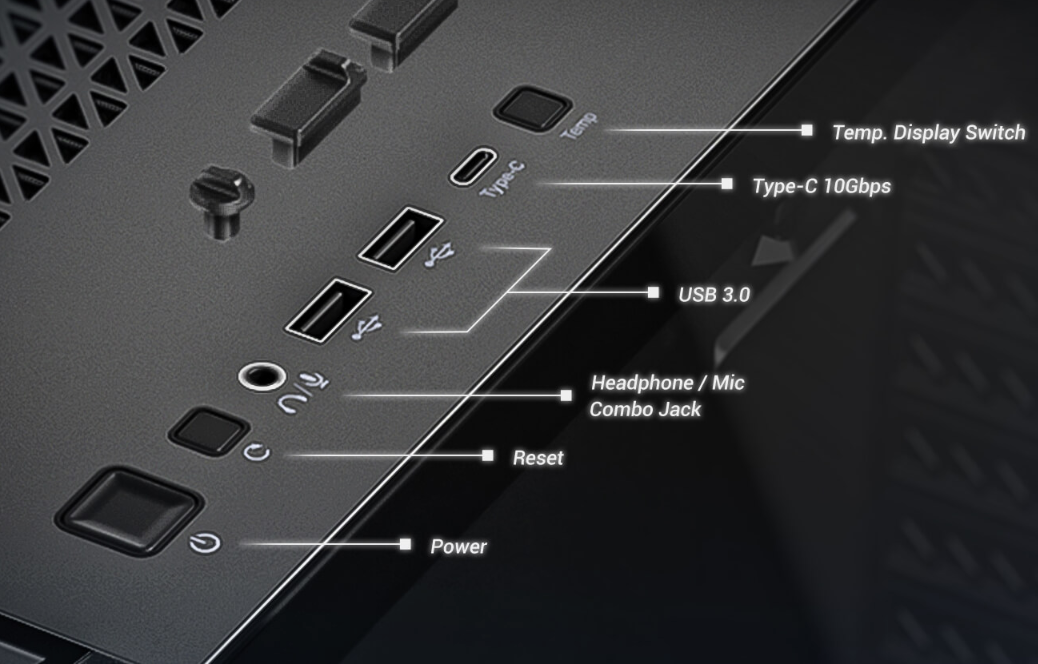 By pressing the switch button on the I/O panel, users can glance at the temperature of the CPU and GPU on the temperature display.