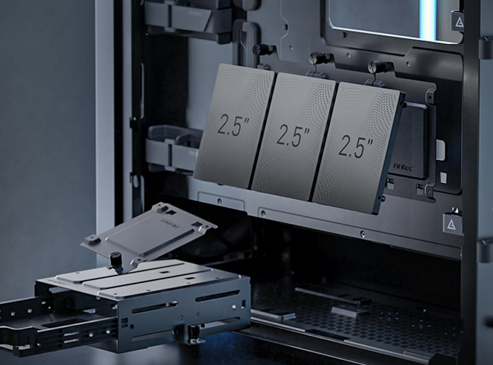 Supports up to 5 drives: 2 removable drive trays for 3.5" HDD/2.5" SSD & 3 drive trays for 2.5" SSD.