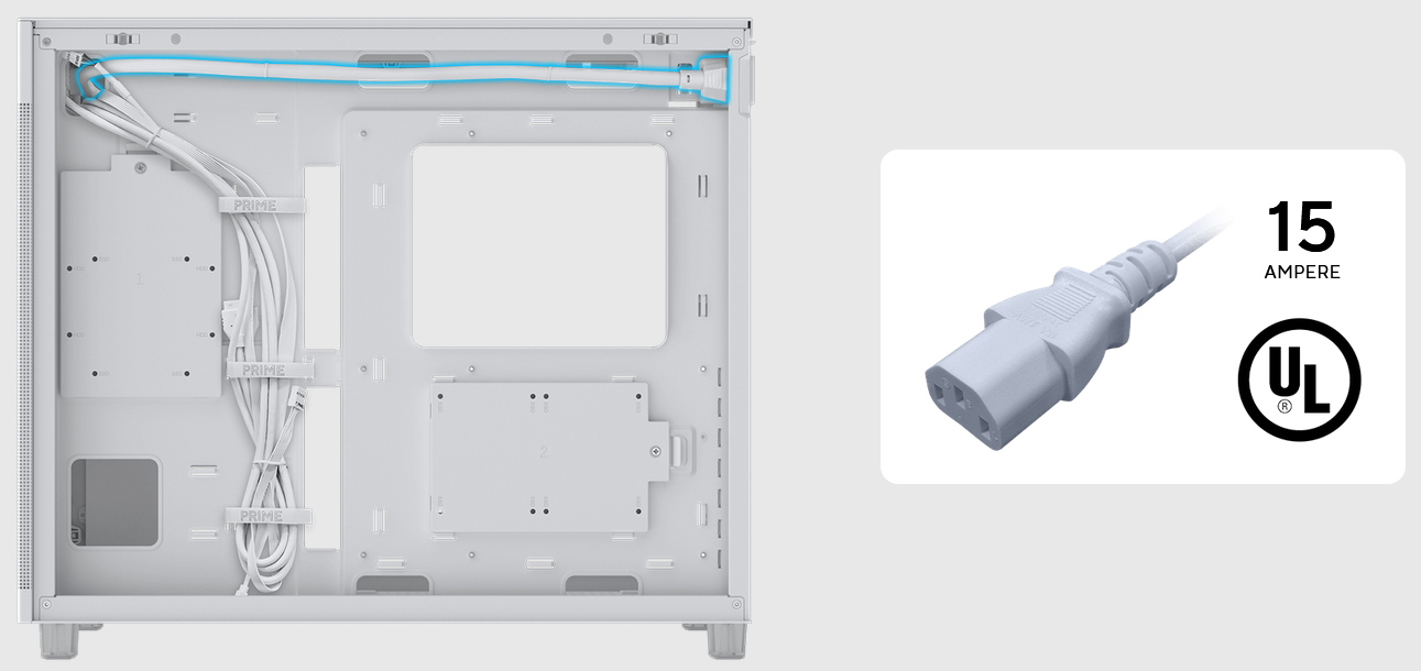 The UL-certified internal power cable delivers 15 amperes of current to ensure stable operation for high-end systems with a 1200W power supply.
