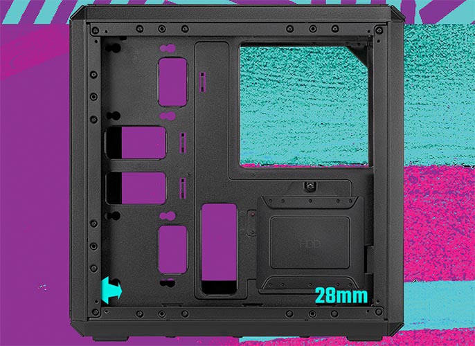28mm of space behind the motherboard tray allow for easy and hidden cable management.