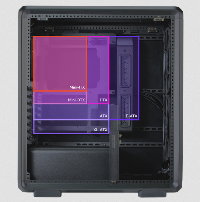 Supports Mini-ITX to E-ATX motherboards, offering compatibility with a wide range of builds and configurations.