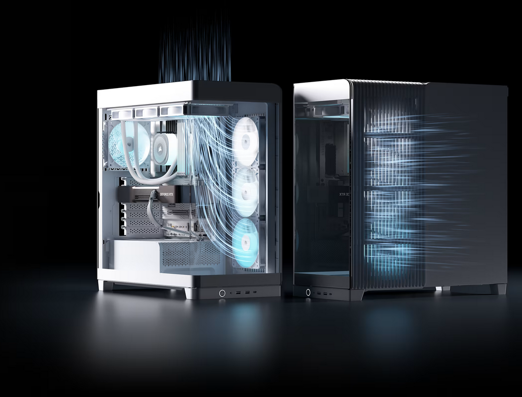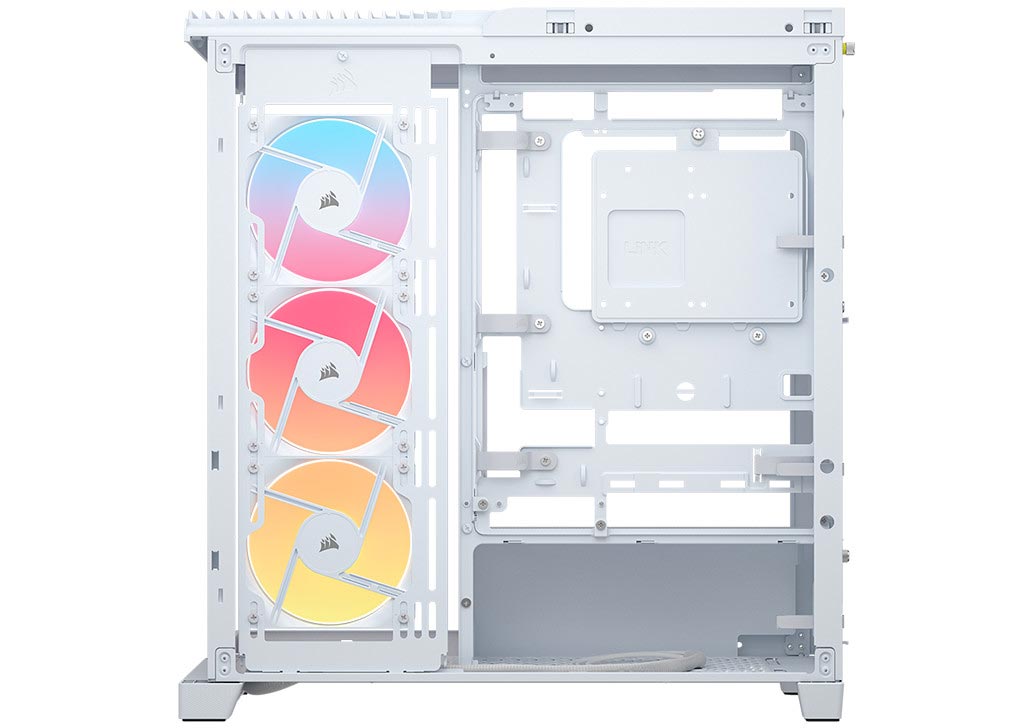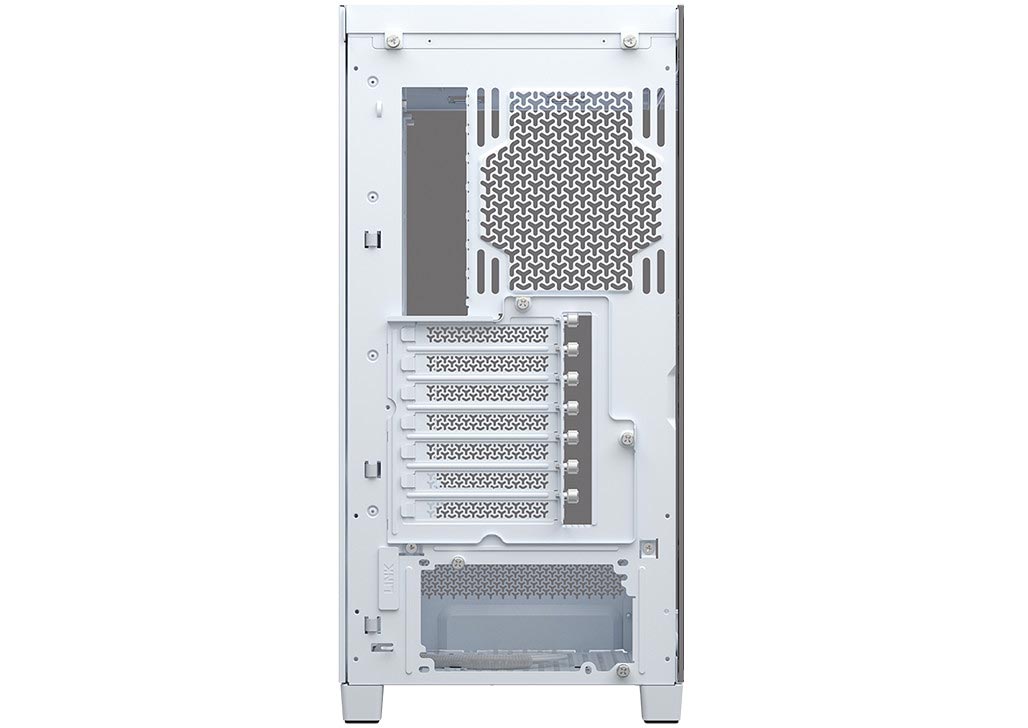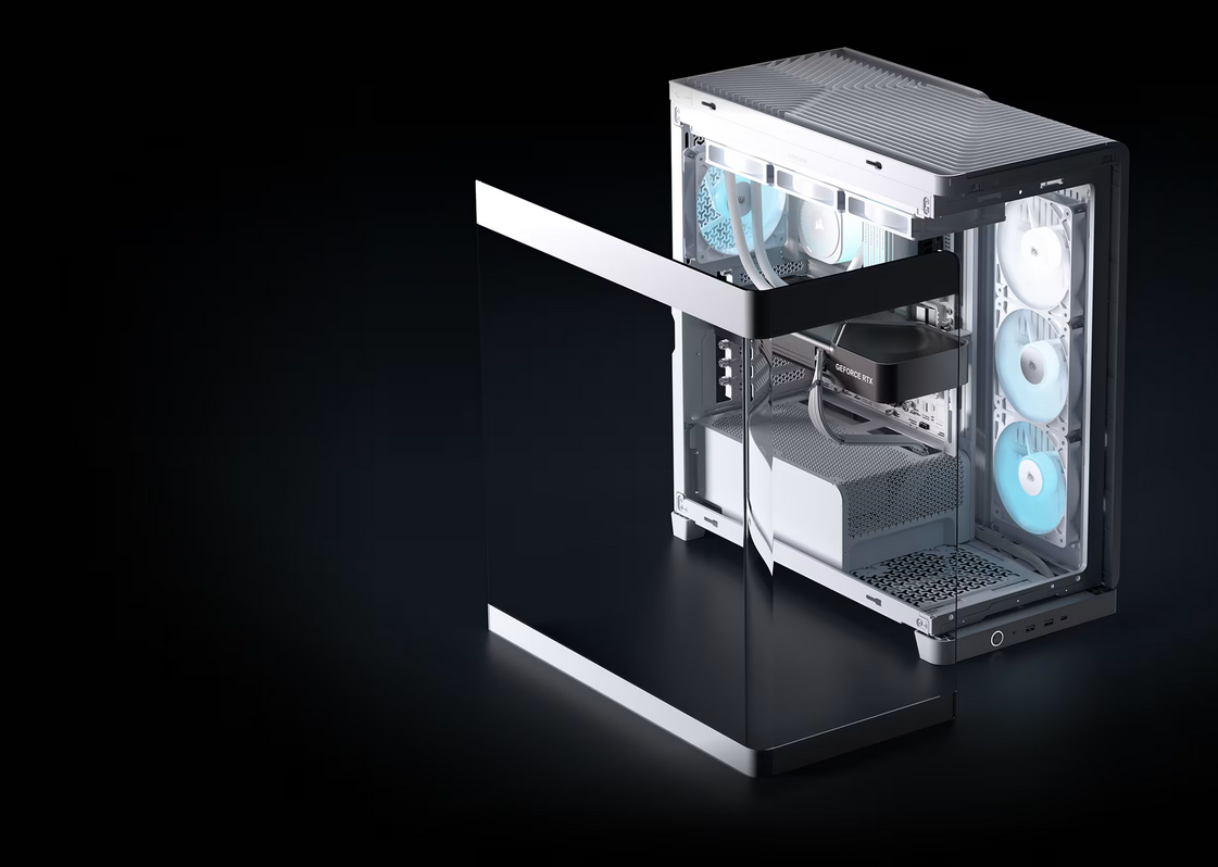 Airflow optimized panels adorn the top and side of the FRAME 4500X to provide maximum breathability for fans mounted in both locations. The side-mounted reverse-rotor intake fans pull cool air in from outside the chassis, while top-mounted fans (sold separately) exhaust hot air out of the case to keep the interior frosty.