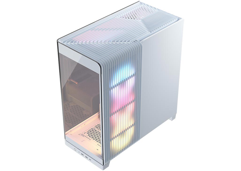 Reverse-rotor ARGB PWM RS-R intake fans are included for unobstructed RGB lighting and low-noise cooling. Fresh air is pulled through the ventilated side and into the spacious mid-tower chassis for effective cooling and plenty of airflow to ensure maximum performance.