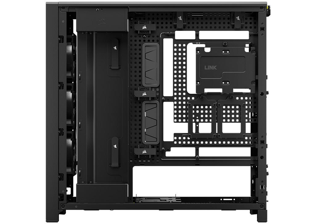 The CORSAIR FRAME 5000D RS is a modular and spacious mid-tower PC case featuring InfiniRail Fan Mounting System, RapidRoute 2.0 cable management, and is compatible with reverse connector motherboards.