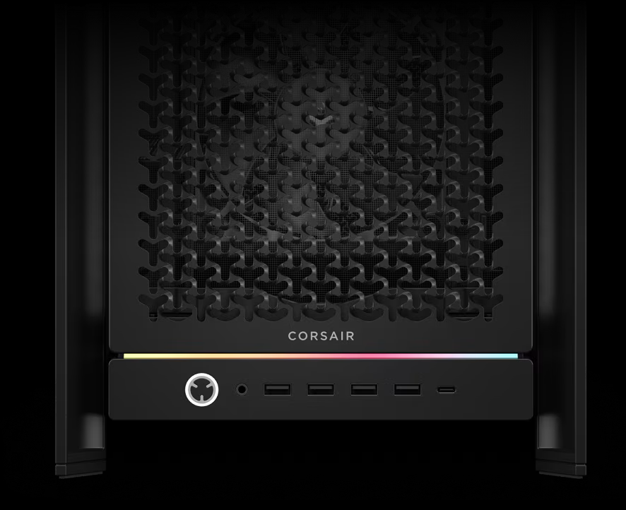 An RGB light strip above the front I/O adds a dash of customizable color to the front of the chassis.