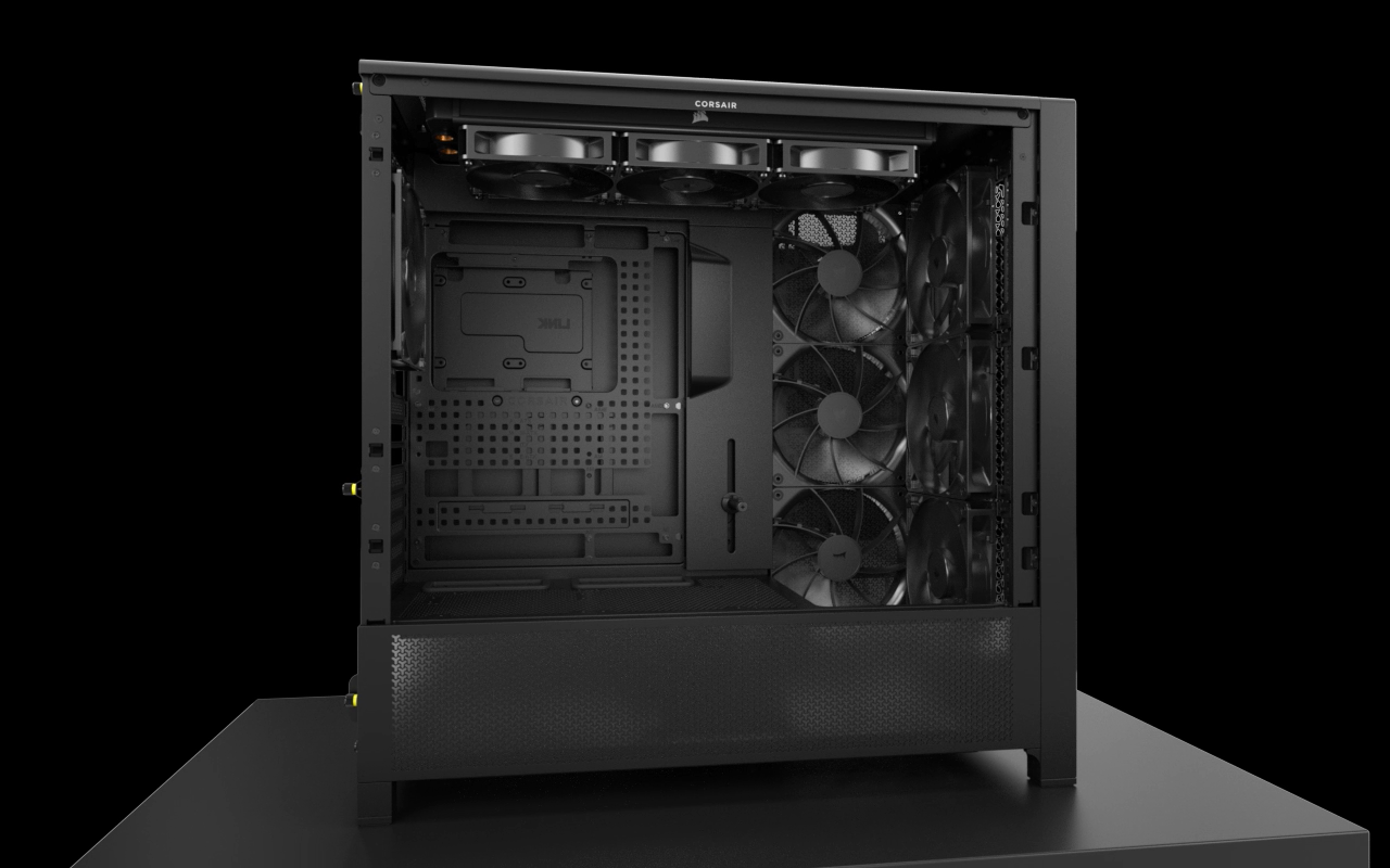 Customize your cooling setup with room for up to 14x 120mm fans, plus versatile radiator mounting options including up to triple 360mm radiators in the roof, front, and side. The FRAME 5000D has a cavernous interior designed for high-powered builds and abundant cooling.