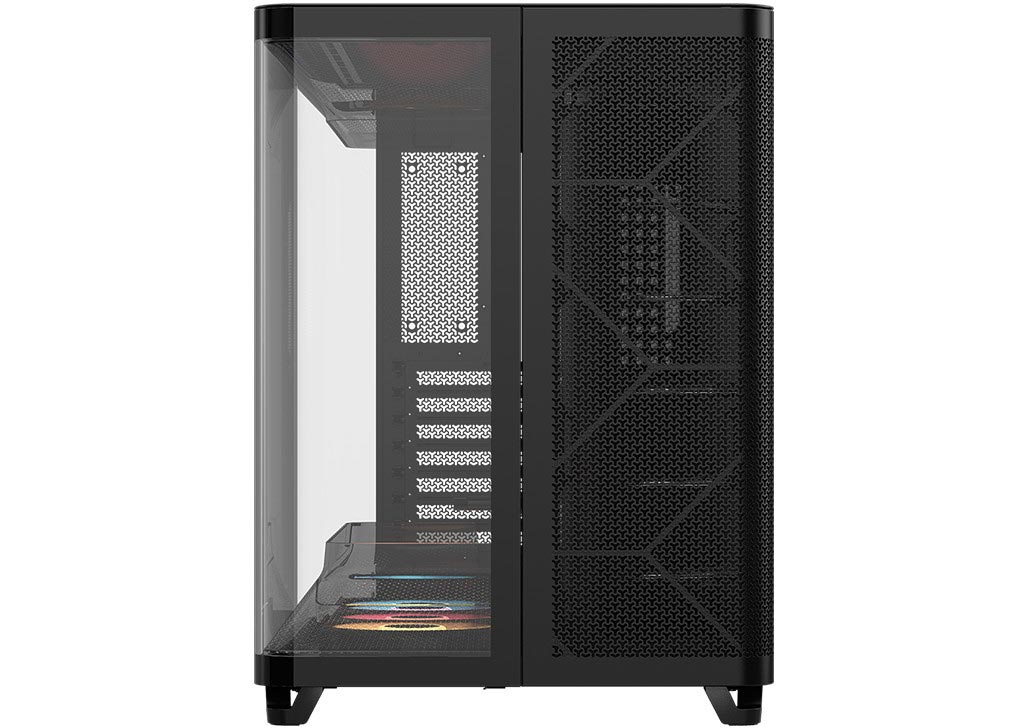 Preinstalled reverse-rotor RS-R ARGB 120mm fans in the bottom of the chassis allow for powerful, low-noise cooling with glorious, unobstructed RGB lighting.. The fans can be daisy chained together and plugged into a motherboard’s PWM and +5V RGB connectors for easy lighting and fan speed control.