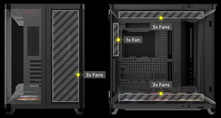 3x 120mm intake fans are included with an additional 7x 120mm fan mounts for serious airflow.