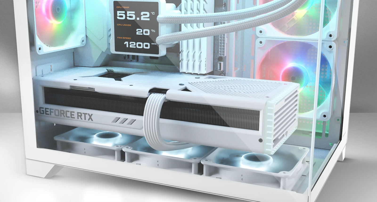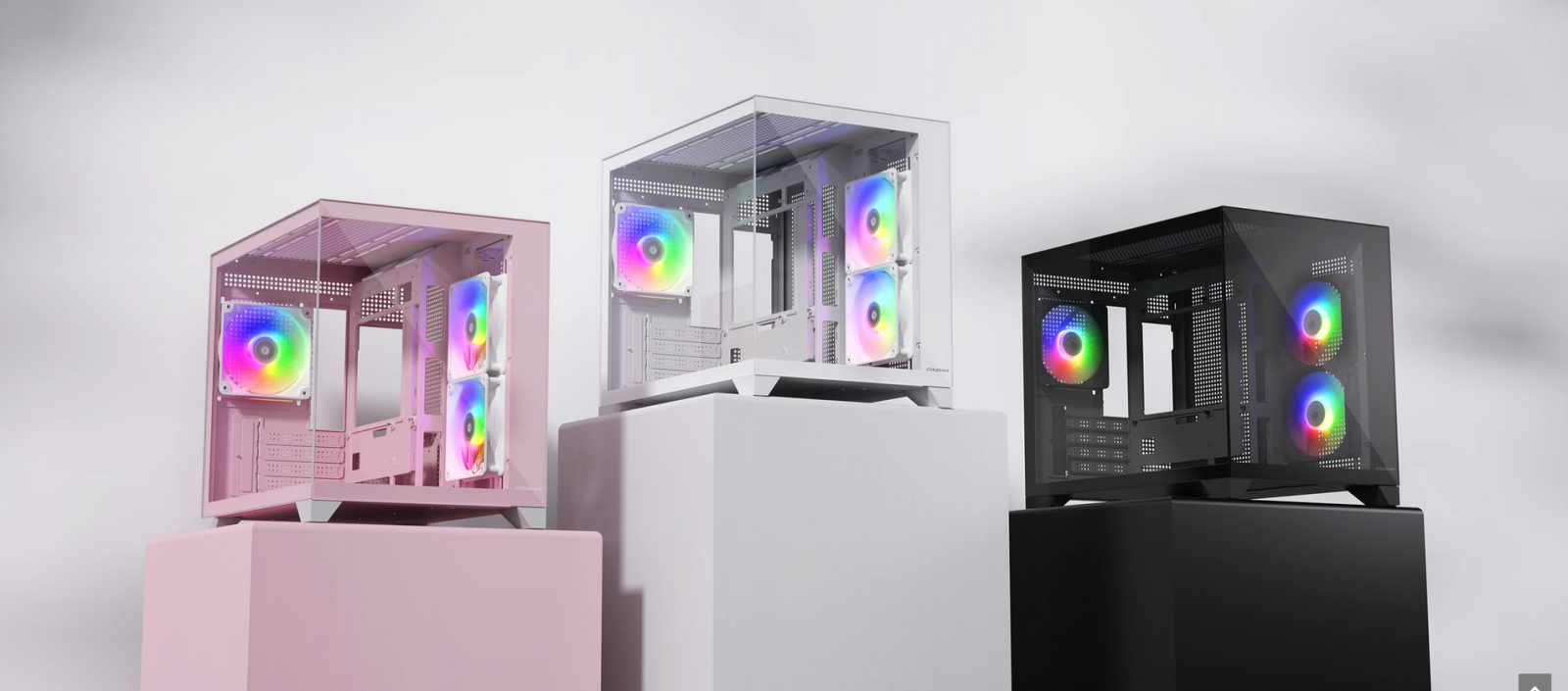 The FV150 Mini’s compacts dual-chamber aesthetics and functionality into a form factor suitable for environments with limited space. The glass panelled primary chamber enhances build visibility, while the second chamber discreetly conceals hardware. Reverse connector motherboard compatibility enables zero-cable build configurations.