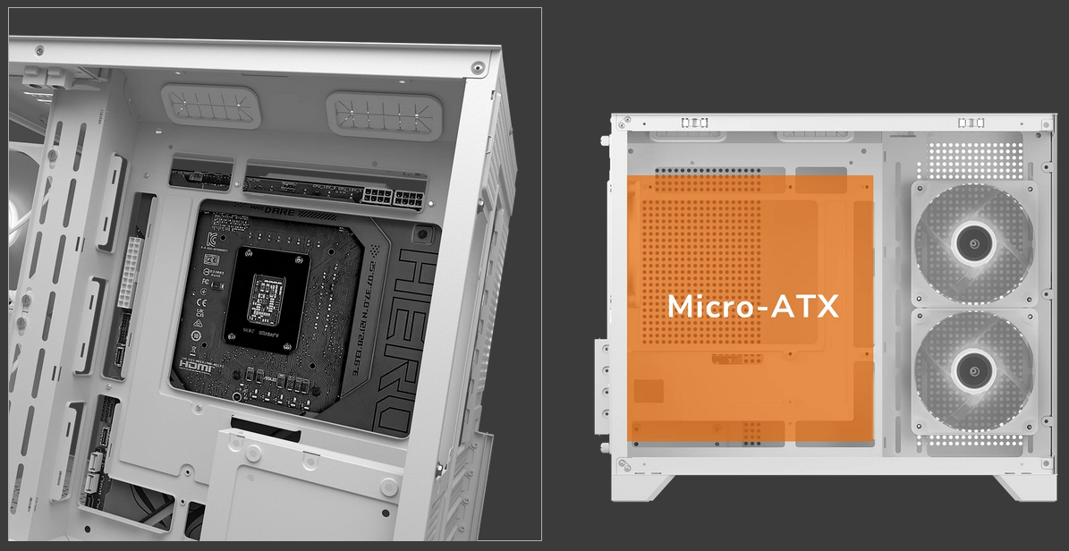 The FV150 Mini supports reverse connector motherboards for the cleanest-looking build yet. It’s also compatible with Mini-ITX and Micro-ATX motherboards, offering flexibility for various build configurations.