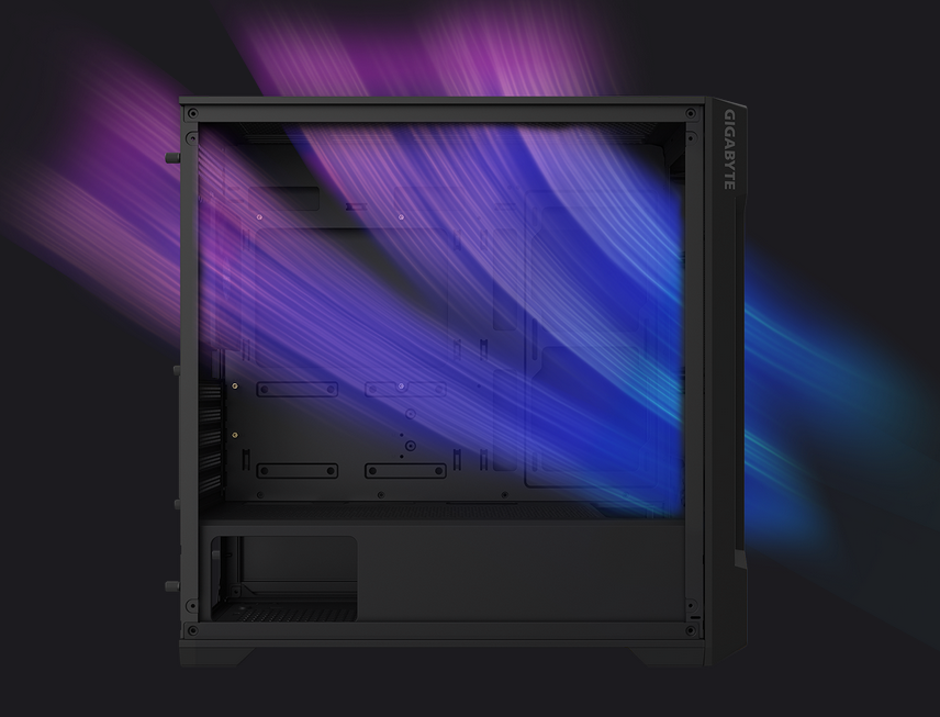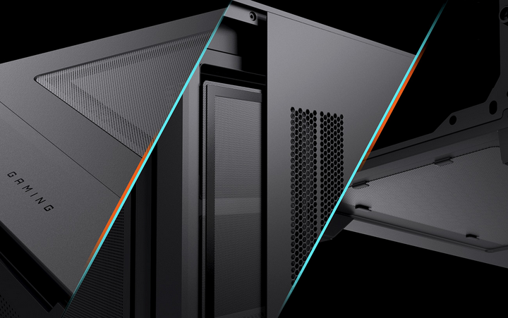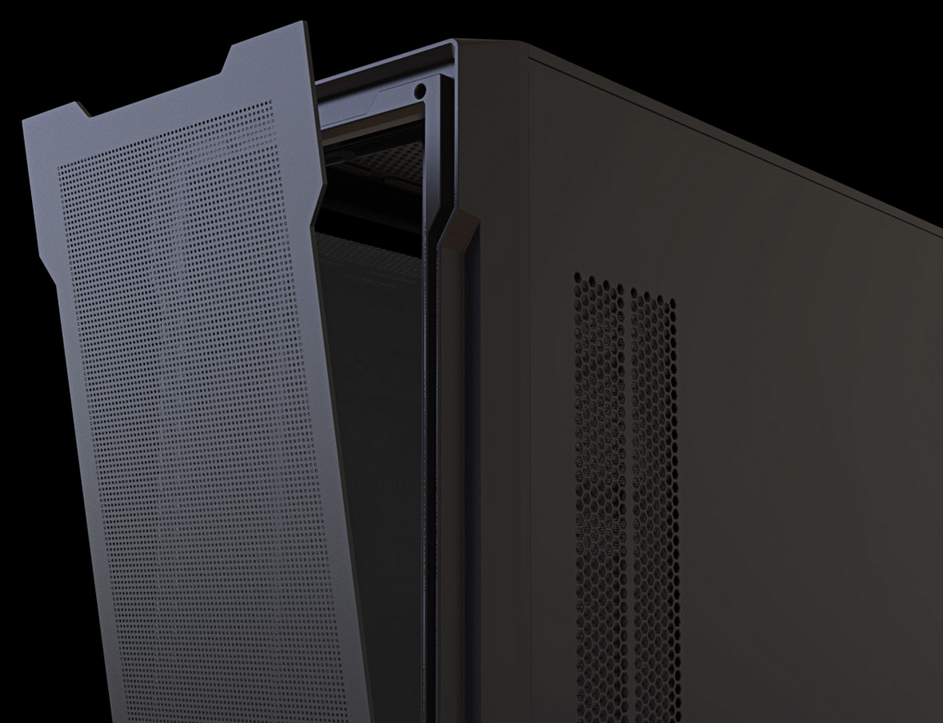 The front, top and partial right-side panels are vented design, delivering generous airflow for optimized cooling with premium aesthetics.