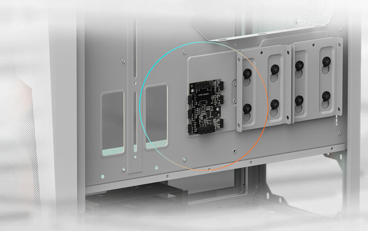 The built-in ARGB connector hub is equipped with six 5V 3-pin connectors, enabling users to expand their RGB light stripes, create a superb cooling system as well as a fantastic and gorgeous rig.