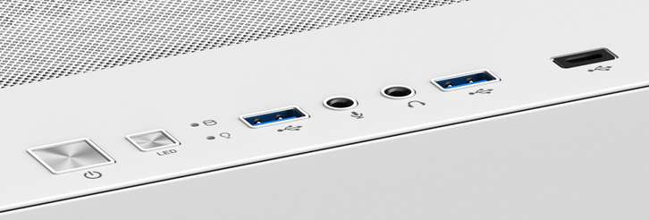 Equipped with a USB 3.1 Type-C port, two USB 3.0 ports, audio ports, a RGB LED switch and a power button