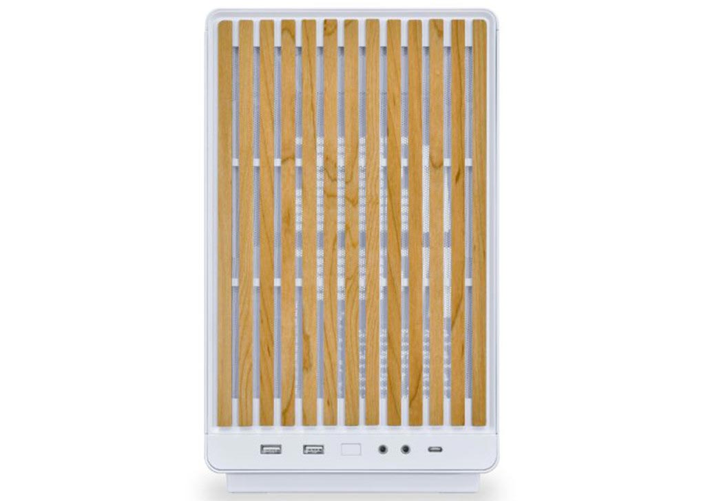 The wooden edition open-space design of the front panel allows for optimal airflow, ensuring fresh air intake for the PSU when the PSU is mounted at the front with the fan facing outward, enhancing cooling efficiency.