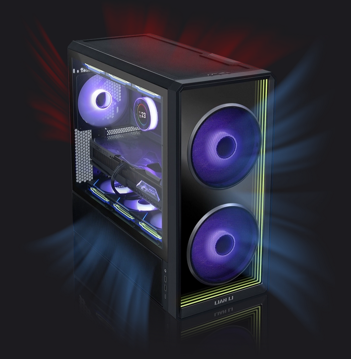 LANCOOL 217 INF continues our signature high-efficiency airflow design with an infinity mirror front panel for a striking visual effect, while dual tempered glass cutouts ensure ample airflow.