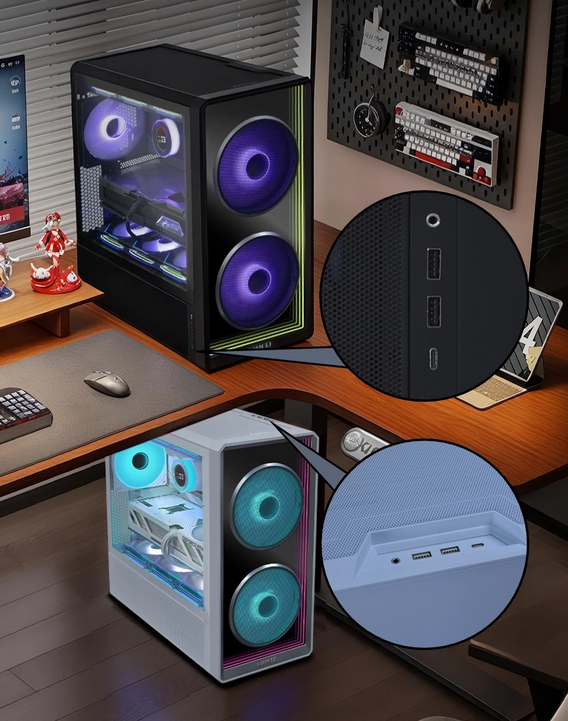 - Mid-tower chassis engineered for high-volume airflow with a bold infinity-mirror front aesthetic.