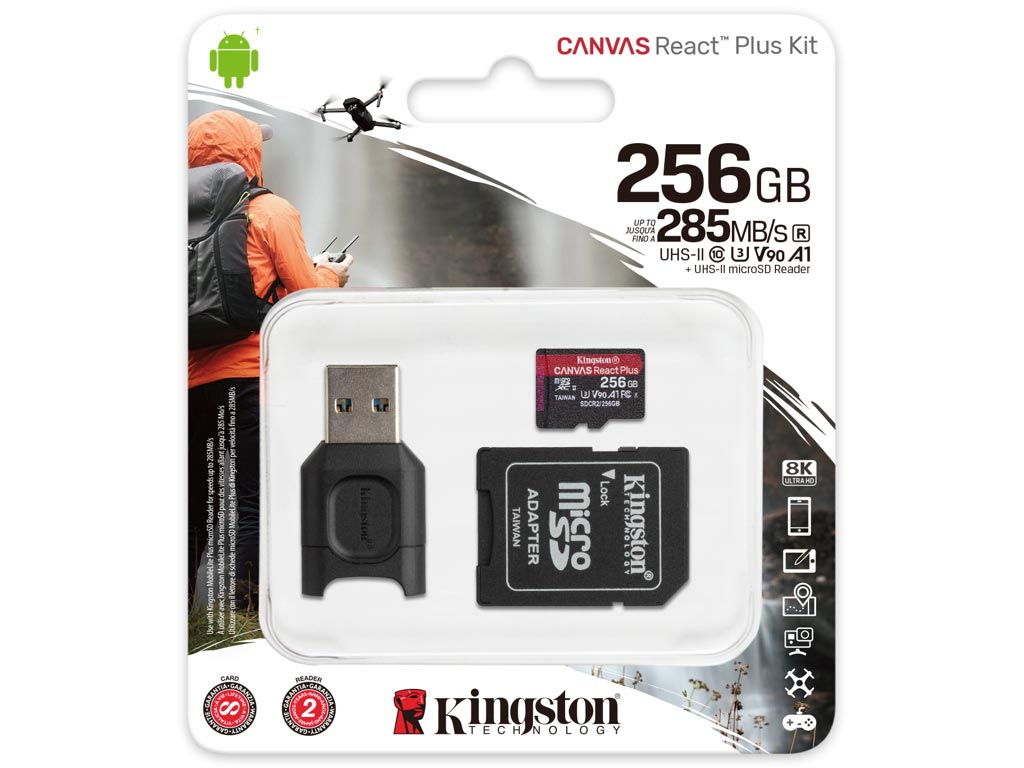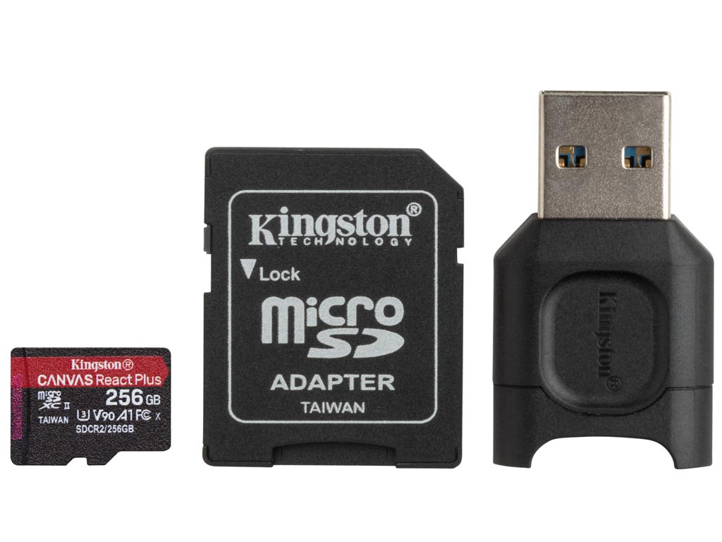 Kingston Canvas React Plus 256GB micro SDXC Class 10 UHS-II U3 + SD Adapter