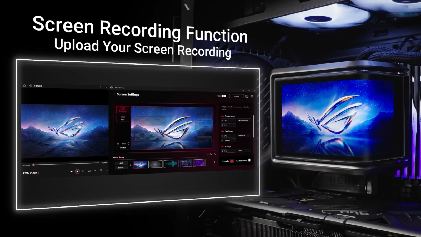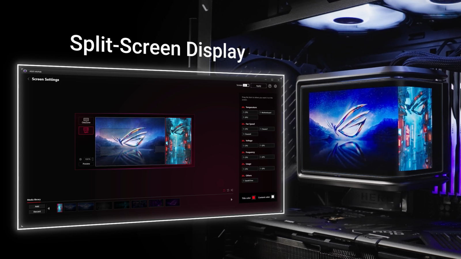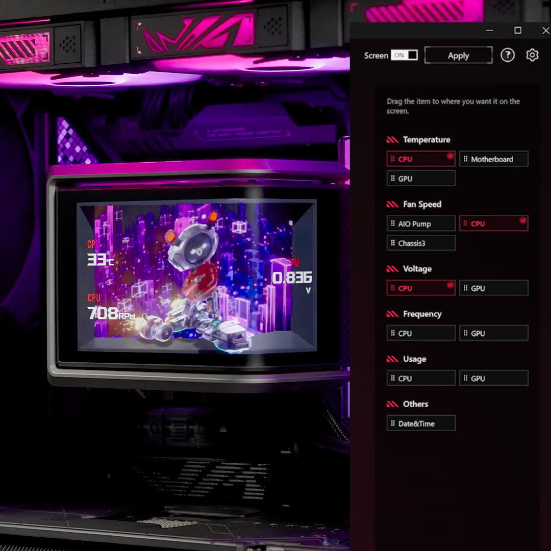 The ASUS InfoHub lets you easily add any custom content, including images, GIFs, and videos.