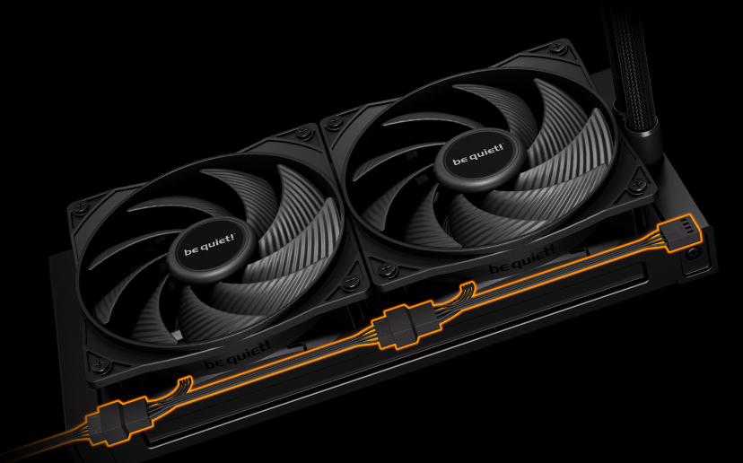 2 Pure Wings 3 120mm PWM high-speed fans provide high air pressure to efficiently cool the liquid of the Pure Loop 3 240mm radiator. The fans also come with a “closed loop motor” function. This feature always keeps a steady fan speed, no matter the resistance – ideal for radiators. Despite their performance, Pure Wings 3 offer very quiet operation. Even at maximum speed, the fans operate at only 35,2dB(A).