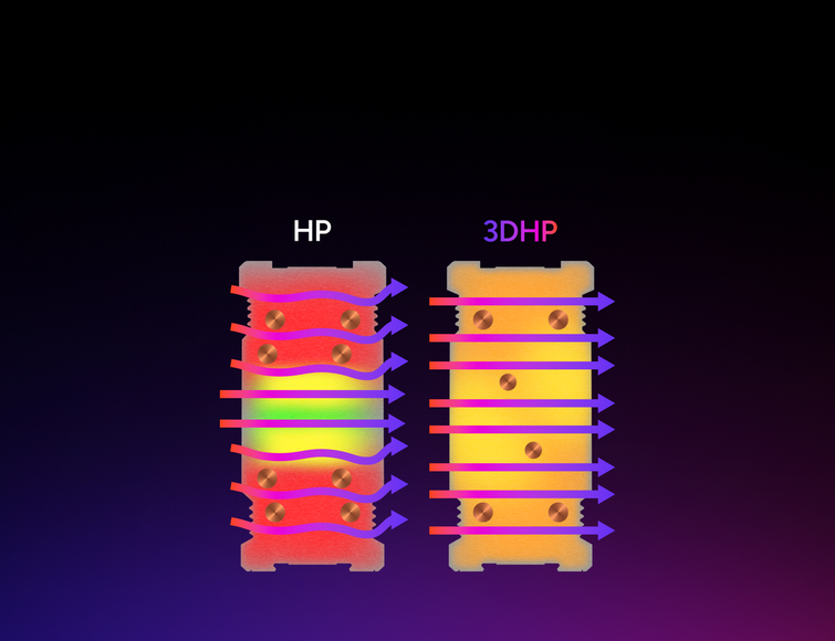 3DHP technology redefines heat pipe design by adding a third dimension—an extra pipe that fills the dead zone in standard U-shaped layouts. This added connection improves heat transfer in a slimmer, more efficient design.