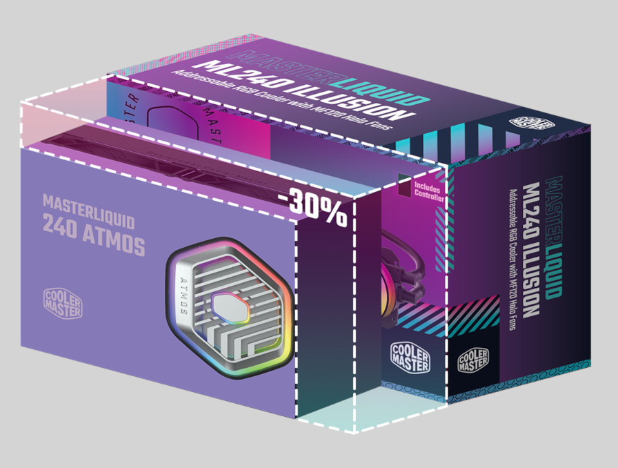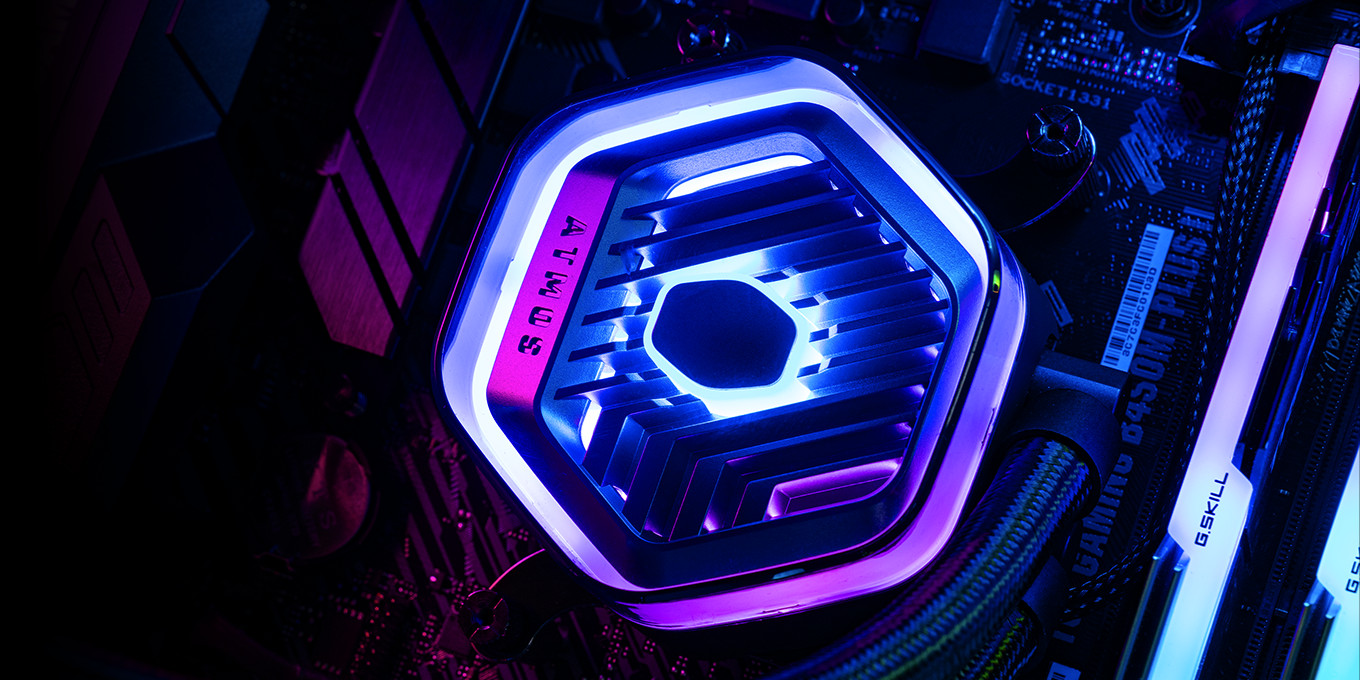 The next generation AIO liquid cooling is here with the MasterLiquid 240 Atmos. The Atmos is our forward-thinking, innovative take on what an AIO cooler can and should be. Exceptionally silent performance provided by our SickleFlow Edge fans. An optimized user experience from unboxing to the MasterCTRL software. A pump top cover fully customizable with your own 3D-printed creations. Eco-friendly construction implemented throughout. Our signature dual chamber pump design, refined. The Atmos represents the best of the best in modern AIO liquid cooling, a full 360 degrees of cool.