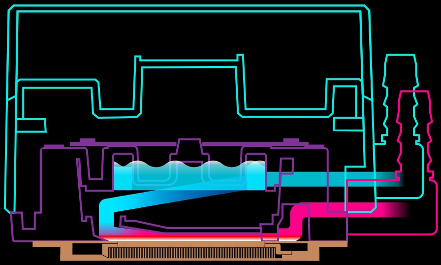 Our latest patented dual chamber design has been refined for enhanced cooling synergy. The new design increases water pressure and optimizes water flow directly to CPU hot spot.