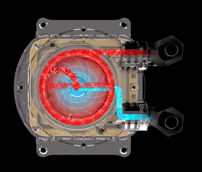 Our latest patented dual chamber design has been refined for enhanced cooling synergy. The new design increases water pressure and optimizes water flow directly to CPU hot spot.
