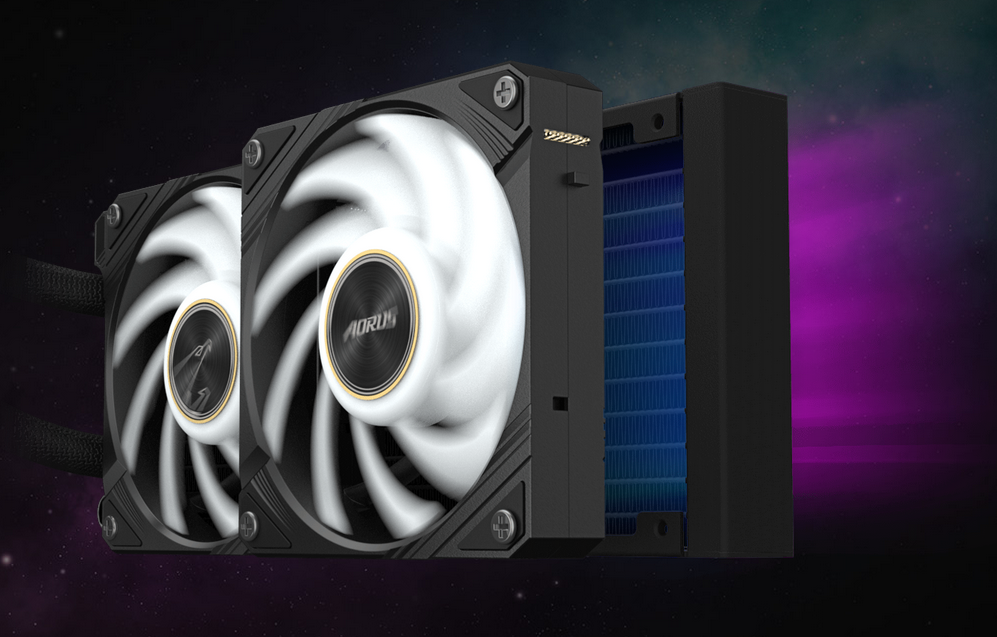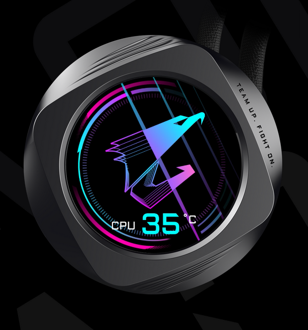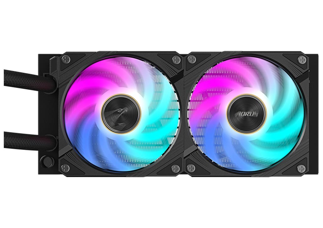 - The water block and fan feature gradient lighting, and the ARGB fan lighting can be synchronized with other AORUS devices through GCC (GIGABYTE Control Center).