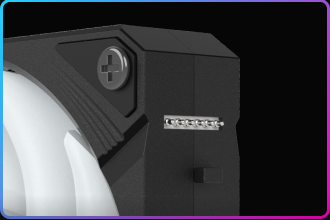 Fan EZ-Chain Mag incorporates a magnetic interlocking mechanism along with a DAISY-CHAIN setup, enabling the transmission of power and signals between fans, thereby saving a significant amount of time on wiring connections.