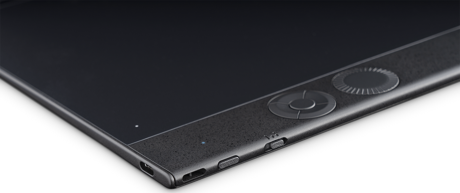 Wacom Intuos Pro introduces a precision-engineered dial, enhancing control over creative tools like timelines, zoom, and color levels. Designed for single-finger operation while holding a pen, it provides precise, click-calibrated adjustments for smooth workflow integration. This intuitive addition ensures effortless navigation and fine-tuned modifications, making complex adjustments more efficient and precise.