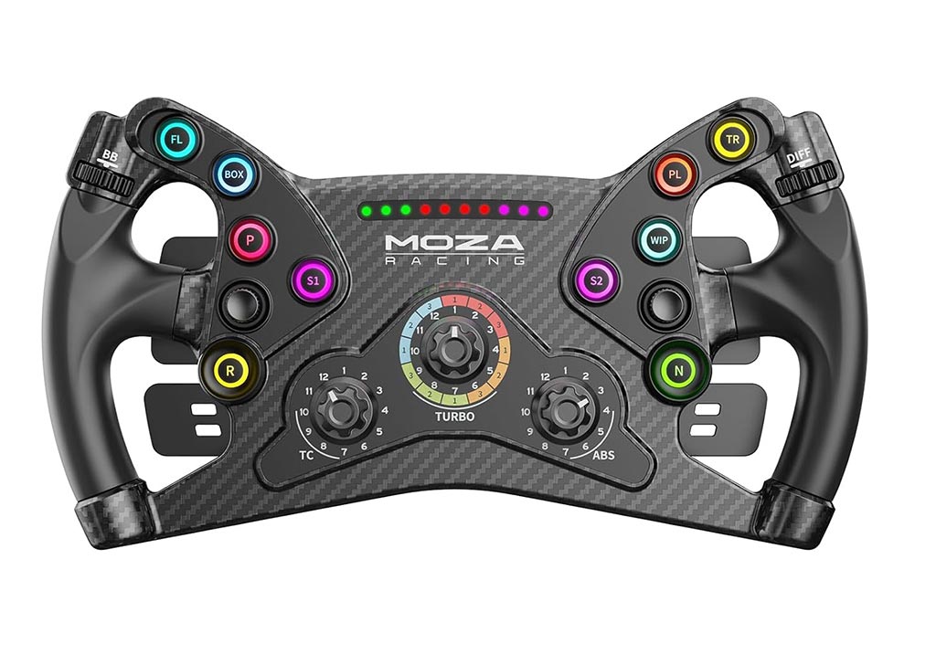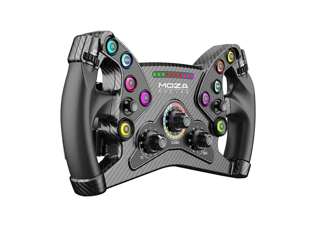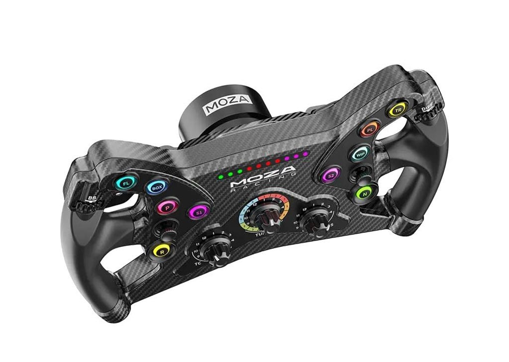 | Λοιπά στοιχεία | Size: 300mm standard GT wheel Paddle Material: Aluminum alloy Magnetic Shifter Paddles: 2 Clutch Paddles: 2 Luminous Short Travel Buttons:10 Joysticks (depressible): 2 Thumb Encoders: 2 Rotary Encoders: 3 High Brightness LEDs: 10 LED Colors: 8 Intelligent Telemetry: Supported Fully Adjustable RPM Leds through MOZA Pit House: Supported Release Method: MOZA Quick Release Communication Method: via Industrial Conductive Slip Ring Paddle Sensor: Non-contact Hall Sensor Dual Clutch Paddle Modes: Combined Axis/Independent Axis/button Knob Modes: Button or dial Compatibility: All MOZA non-wireless wheelbases and 3rd party wheelbases via the MOZA Hub Kit 3rd party base expansion port: Supported |