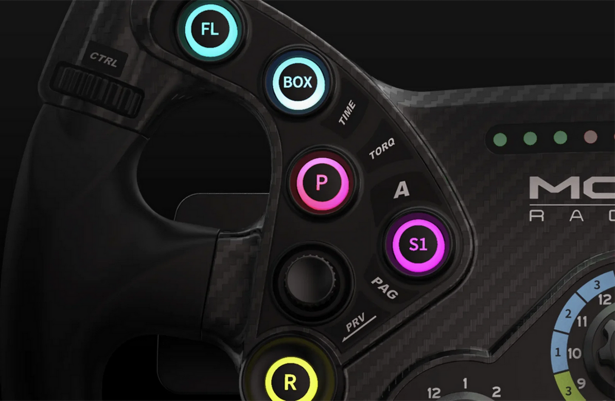 The MOZA KS offers 70 fully programmable input signals for all driving needs. It features thumb and rotary encoders for faster on-the-fly car adjustments, including brake bias, traction control, engine maps, ABS, and more. The two joysticks enable full menu navigation, keeping your hands on the wheel and eyes on the road.