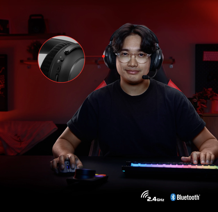 Stay connected without interruptions—game with low latency 2.4 GHz performance on one device via USB-C or USB-A while handling calls or music with Bluetooth on another.