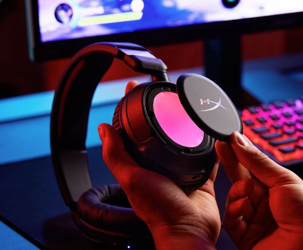 Removable magnetic earcup plates backed by full panel RGB lighting allow you to quickly change the look without tools. Save one profile onboard via HyperX NGENUITY software to match any stream theme or setup.
