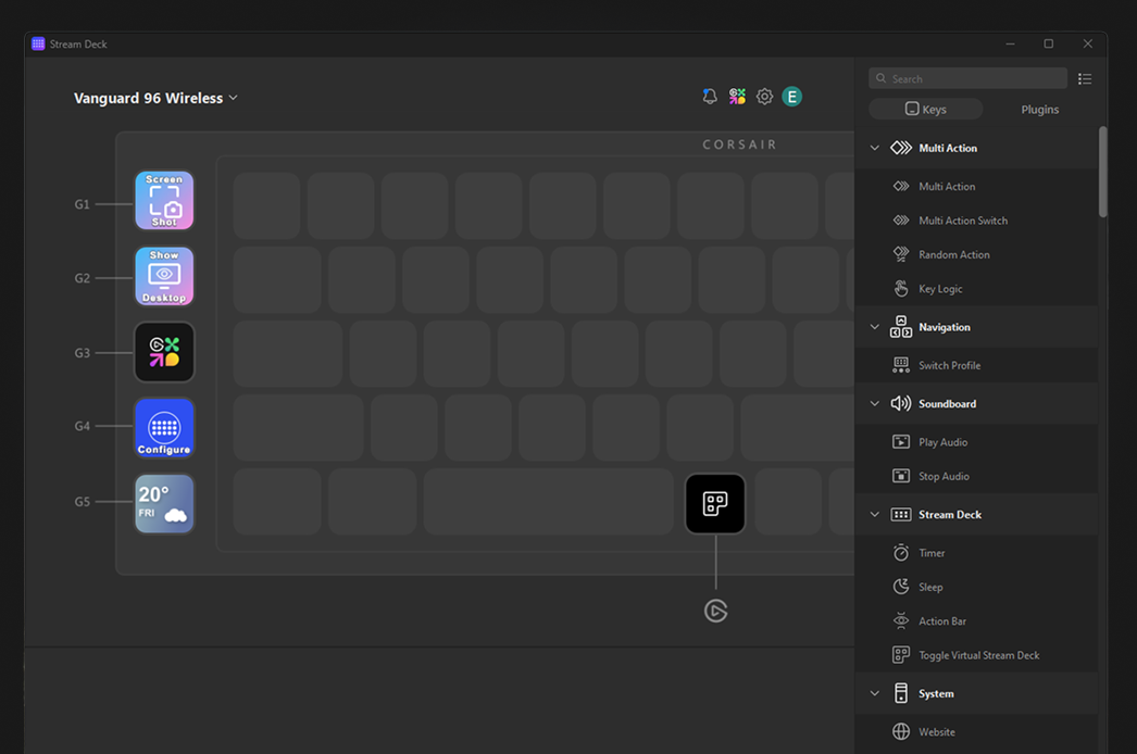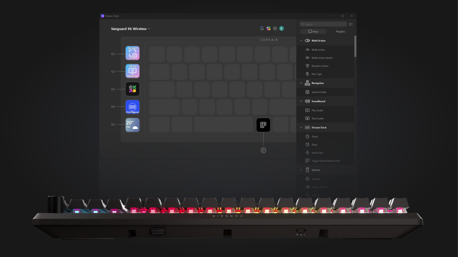 Map Stream Deck functions directly to the VANGUARD 96 WIRELESS’s programmable G-keys. Unlock a world of newfound productivity and enhanced in-game performance.