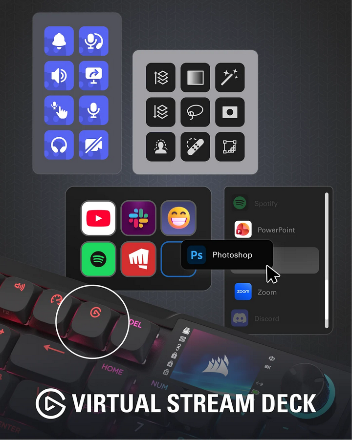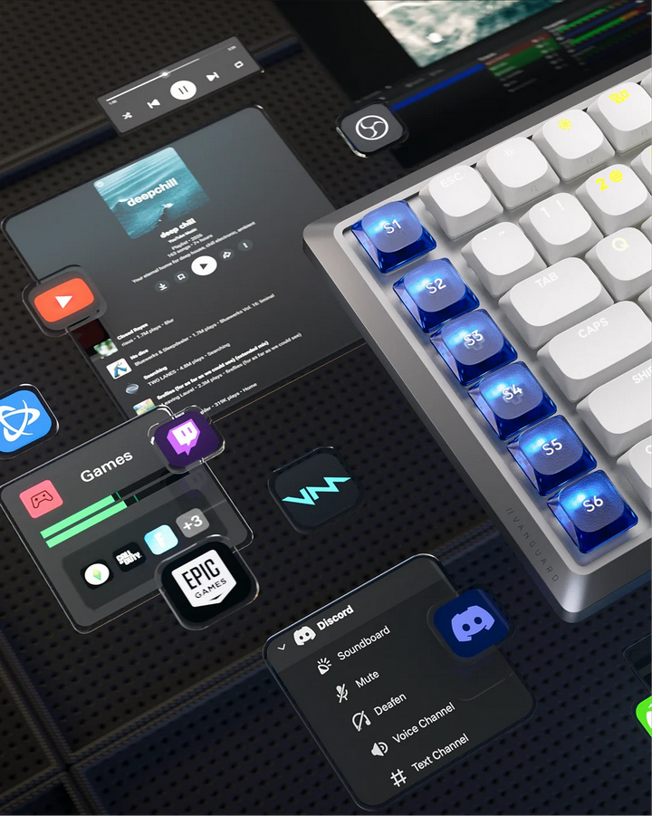 Expand your control beyond your physical keys. Use Virtual Stream Deck to create unlimited digital shortcuts for your games and programs. Tap the dedicated launch key to summon your custom dashboard onto your screen for instant, effortless control.