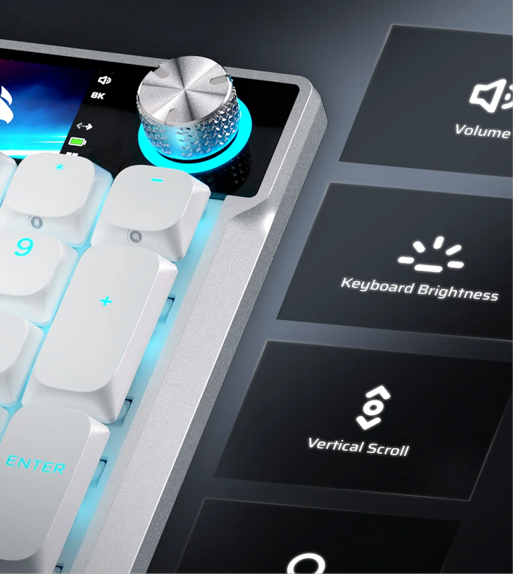 Bring your keyboard to life with a vibrant, full-color 1.9" IPS display. Boasting a crisp 320 x 170 resolution, it is the perfect canvas for custom animations, static images, real-time rotary dial feedback and more.