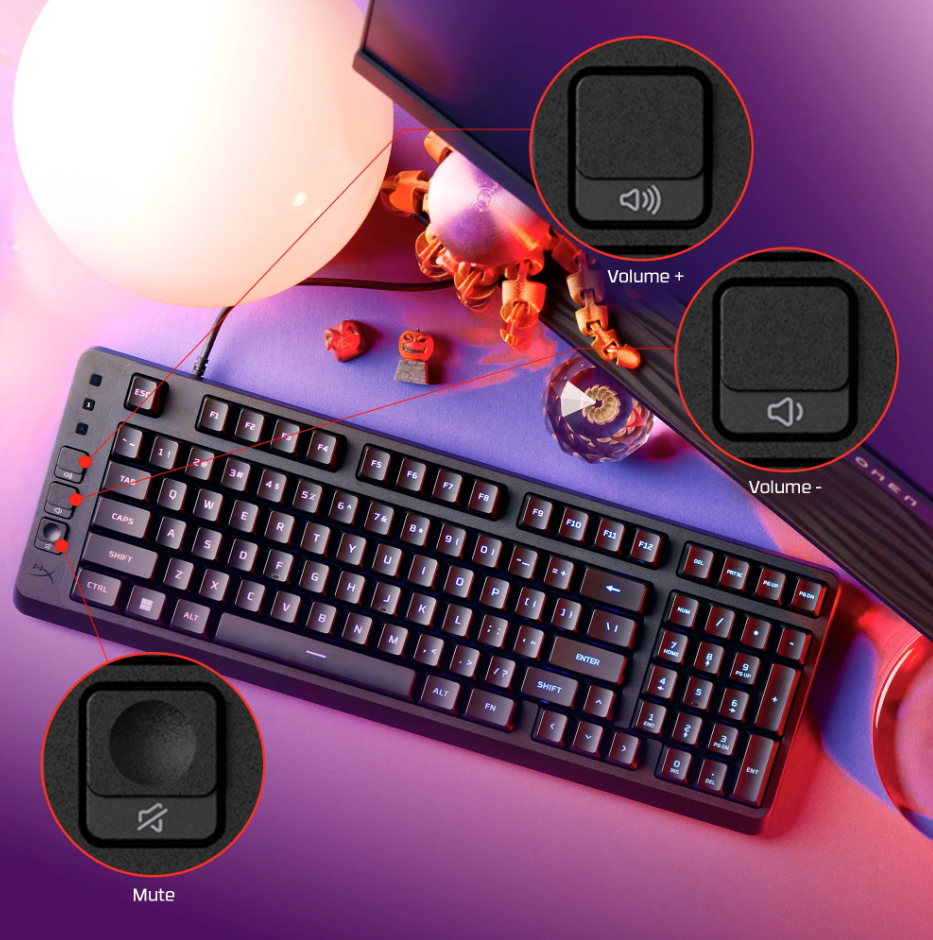 HyperX Eve 1800 delivers a full-size keyboard in a condensed layout, giving you extra room for your headset, mouse, and other accessories.