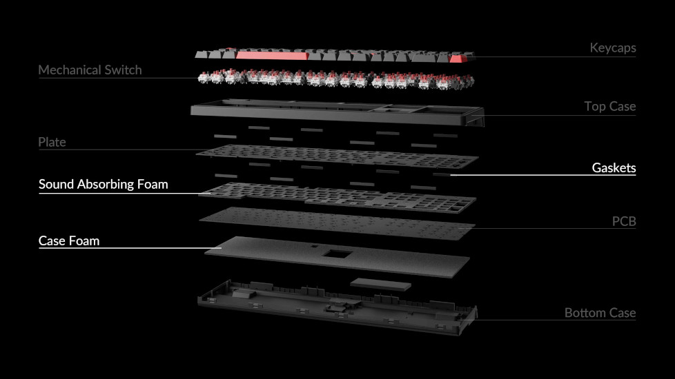 The Lemokey X3 uses a gasket mount structure to reduce acoustic resonance while adding more typing flexibility. Along with the sound-absorbing foam and the case foam, it provides you with a quieter and smoother typing experience.