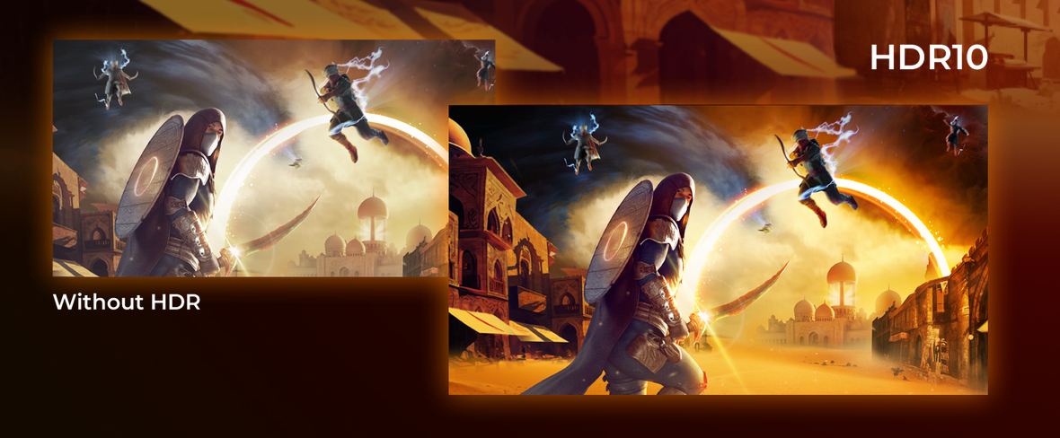 HDR10 is here to enhance picture quality even further, improving the synchronization of your GPU or your console with the monitor. This creates a more realistic, immersive, and smooth gaming experience: You’ll feel like stepping in the game, frame by frame.