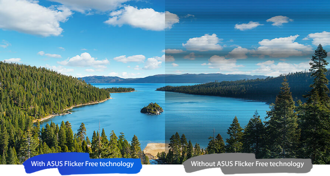 TÜV Rheinland-certified ASUS Flicker Free technology eliminates flicker, ensuring comfortable viewing experiences. This technology helps minimize eyestrain and other ailments typically associated with extended hours of viewing.