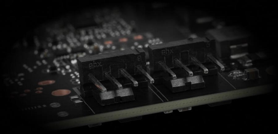 Top-shelf capacitors, chokes, and MOSFETs are selected to effortlessly deliver hundreds of watts at a millisecond’s notice. The Super Alloy Power II parts are soldered to the PCB using our advanced Auto-Extreme automated manufacturing process. Smooth joints on the rear of the PCB and the elimination of human errors ensures each graphics card meets our rigorous specifications.
