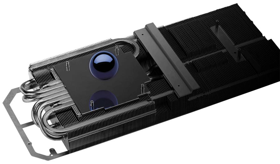 To get heat into the heatsink array efficiently, so that it can be whisked away by the powerful Axial-tech fans, we use a manufacturing process that improves the surface smoothness of the heatspreader at the microscopic level. The extra flatness allows for better contact with the die, helping to enhance thermal transfer.